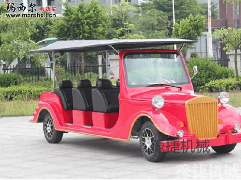玛西尔电动老爷车是专为楼盘小区、旅游景区、公园、大型游乐场、封闭小区、校园、花园、度假村、别墅区、城市步行街、机场、港口、码头等开发的环保型乘用车辆,具有性能卓越、外形豪华气派、经典怀旧。外形新颖、内饰豪华精致、乘坐舒适安全的特点,是理想的场内电动观光车。
